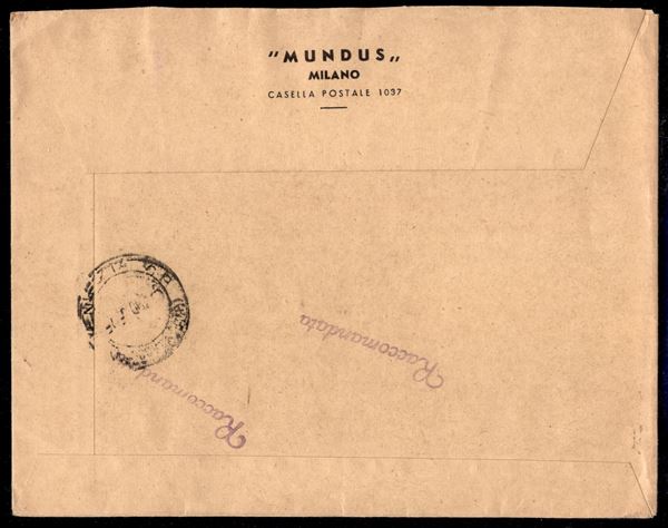 Raccomandata da Milano 3.9.959 con Prampolini coppia 15 cent + Preolimpica striscia di tre 60 lire (860 + 864)