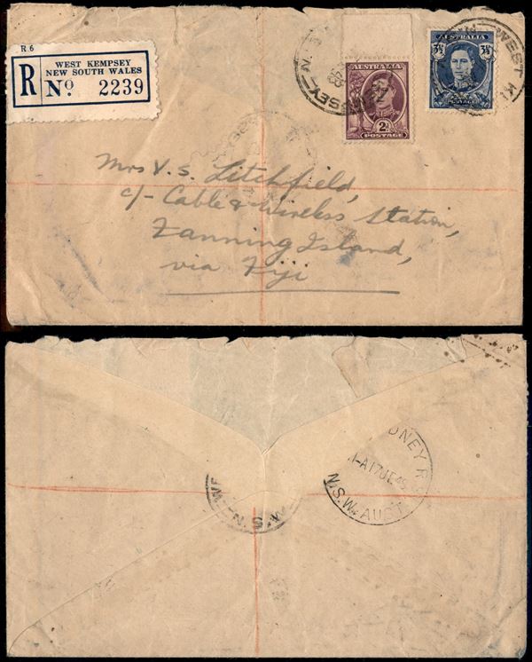 Raccomandata da West Kempsey a Zanning Island (via Figi) del 15.1.43 (165 + 167)