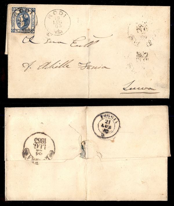 Rodi 19.7.63 (P.ti 7) - 15 cent (13 - Regno) su piego per Lucca