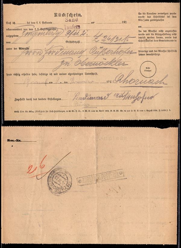 Sand Tranfers - ricevuta di ritorno del 2.11.21 - Ahornach im Pusterthal al retro