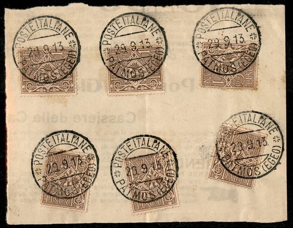 Sei 1 cent Floreale (68 Regno) usato su frammento di giornale il 29.9.13