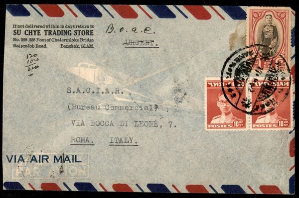 Siam - 1949 (17 giugno) - aerogramma da Bangkok a Roma