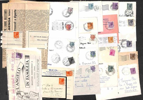 Siracusana - insieme di 23 oggetti postali - notati due giornali con 10 lire e 25 lire isolati