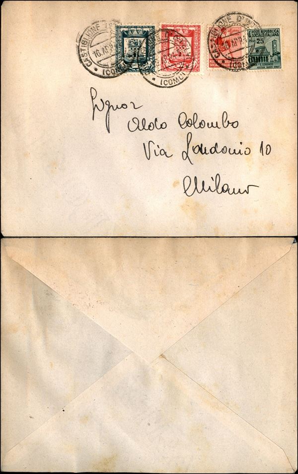 Stemma (14/15) + Monumenti (499 + 505 RSI) - 4 valori su busta per Milano del 16.4.45