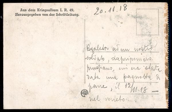 Stosstrup - "Regalata...da prigioniero prussiano...per una pagnotta di pane il 12.11.18 nel veneto" (manoscritto) - cartolina nuova