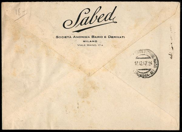 Striscia verticale di cinque del 6 lire Democratica su raccomandata da Milano Succ. 24 Corso Venezia per cittą del 14.12.47