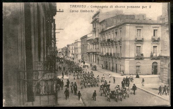 Taranto/Compagnie di sbarco passano per il Corso Umberto - cartolina per Firenze