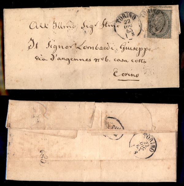 Torino 22 dicembre 1863 - 5 cent (L16) isolato su letterina per cittą