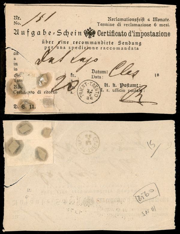 Trient Trento - Certificato d'Impostazione di raccomandata per Cles del 21.2.86