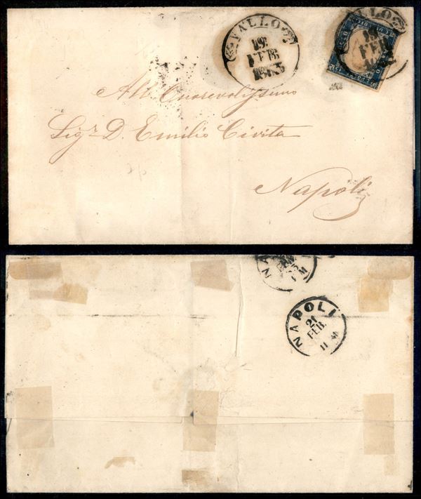 Vallo (P.ti 7) - 15 cent (11 - Regno) corto a destra - lettera per Napoli del 19.2.63 - bel colore