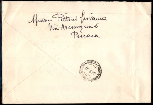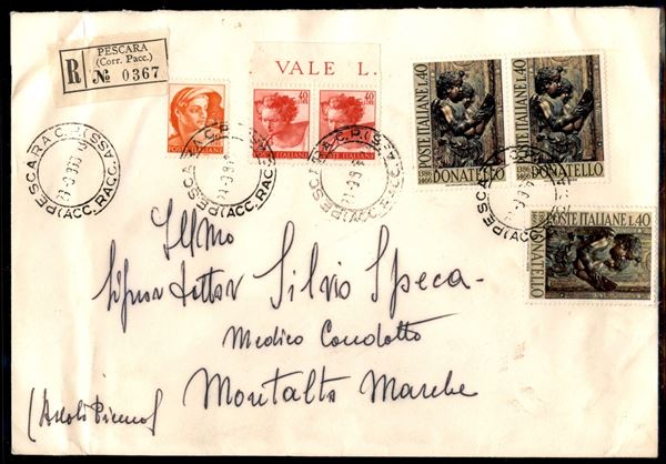 Valori gemelli - coppia del 40 lire Michelangiolesca + 10 lire Siracusana + tre 40 lire Donatello su raccomandata da Pescara del 29.9.66