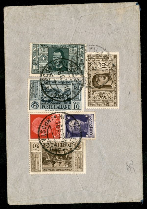 Valori gemelli da 10 e 20 cent - bella affrancatura sei colori al verso di lettera da Milano Ferr. Impostazioni 16.6.32 per la Svizzera (247 + 251 +303/04 +315/16)