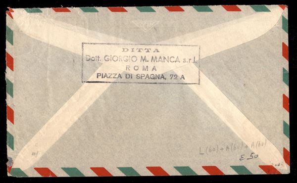 Vanvitelli blocco di sei + singolo 25 lire + Italia al Lavoro 6 lire su lettera via aerea per il Texas da Roma 11.3.952