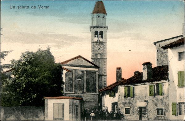 Versa (in cartella verde) leggermente impresso su cartolina per Cormons del 1913