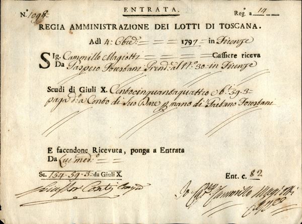 1797 (4 ottobre) - Regia Amministrazione dei Lotti di Toscana - Firenze - ricevuta
