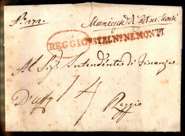 1807 (29.12) - castel N° Ne Monti (in rosso) + Reggio in arrivo - tassata