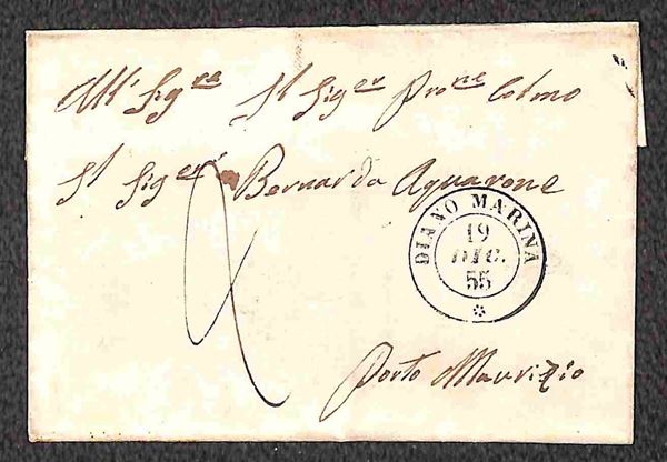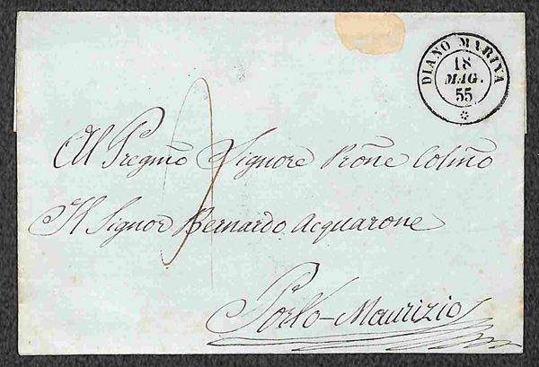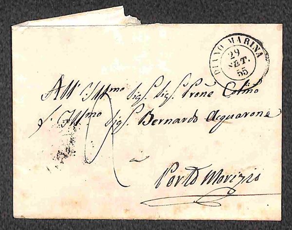1837/1856 - Bernardo Acquarone - 6 lettere da Oneglia a Porto Maurizio (dal carteggio del periodo) tassate