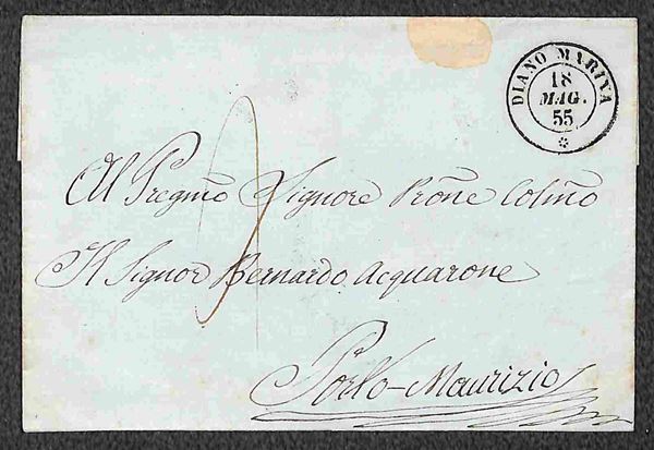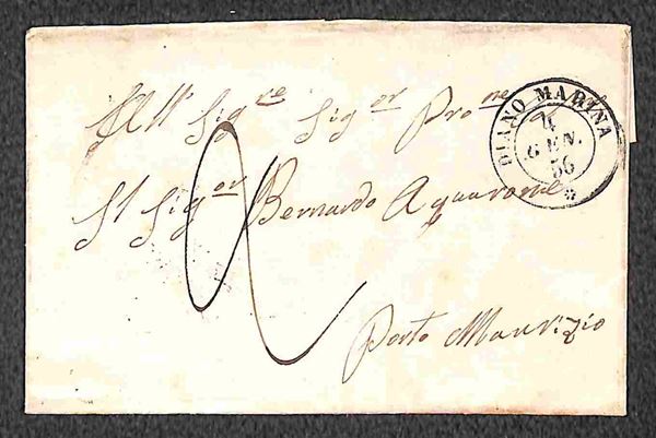 1855/1856 - Bernardo Acquarone - 6 lettere da Diano Marina a Porto Maurizio dal carteggio del periodo (una del 1856) - tassate
