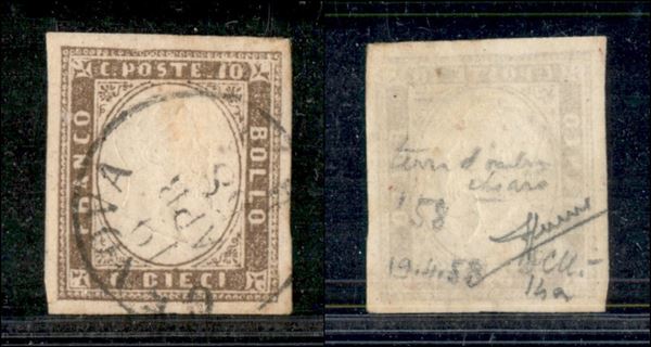 1858 - 10 cent (14a - terra d'ombra chiaro) usato a Genova - Sorani (850)
