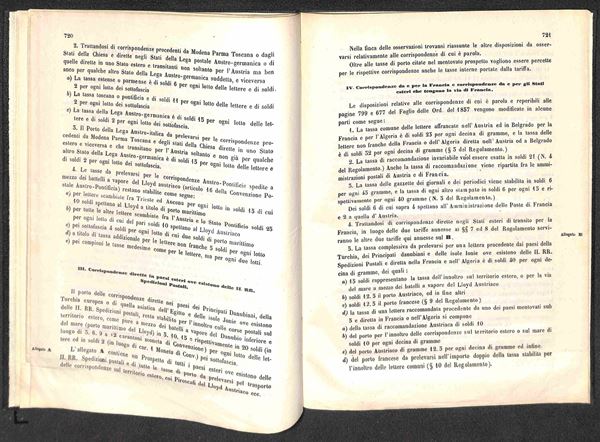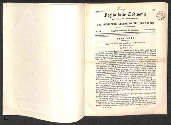 1858 - Vienna 7.10/Milano 27.10 - Ramo Poste - Computo delle tasse postali in valuta austriaca (8 pagine + 3 grandi moduli) + 13.10 Computo delle Tasse Postali per Corrispondenze fra Stati Austriaci e Stati Esteri (32 pagine) - formato A3 - volume rilegato all’epoca