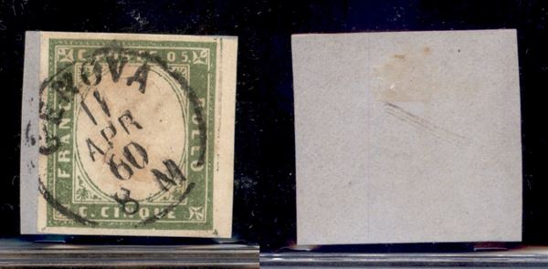 1859 - 5 cent (13Bb - oliva chiaro) usato su frammento (475)