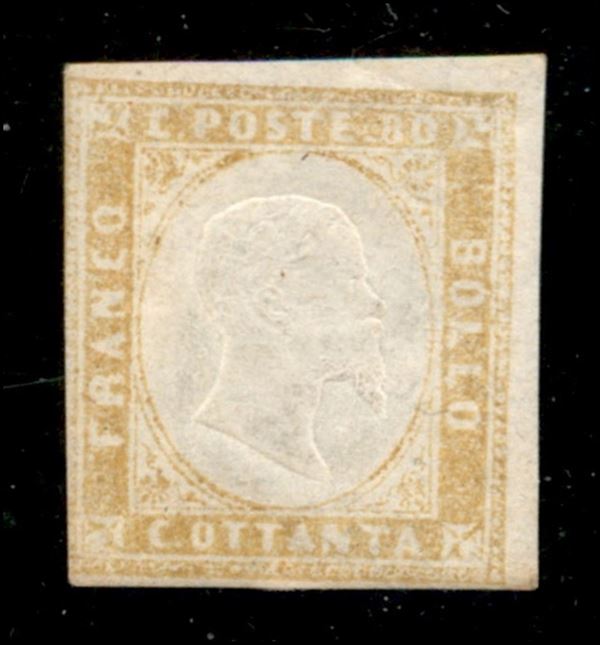 1859 - 80 cent (17A) - appena corto a sinistra con piccola piega in angolo alto destro - gomma integra