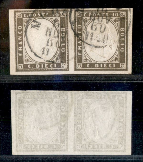 1860 - 10 cent (14Bd - bruno oliva) - coppia orizzontale usata a Modena il 16.11.60