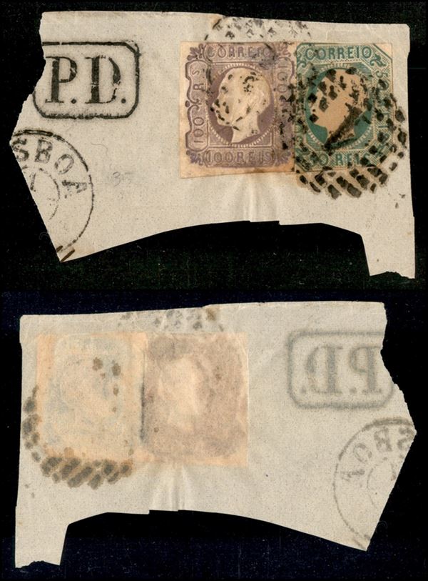 1862 - 50 reis (15) + 100 reis (16) usati su frammento - margini corti