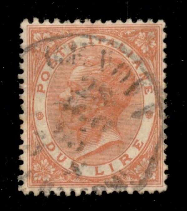 1863 - 2 lire De La Rue (L22) - usato - un dentino corto in basso