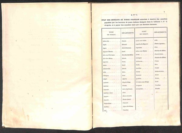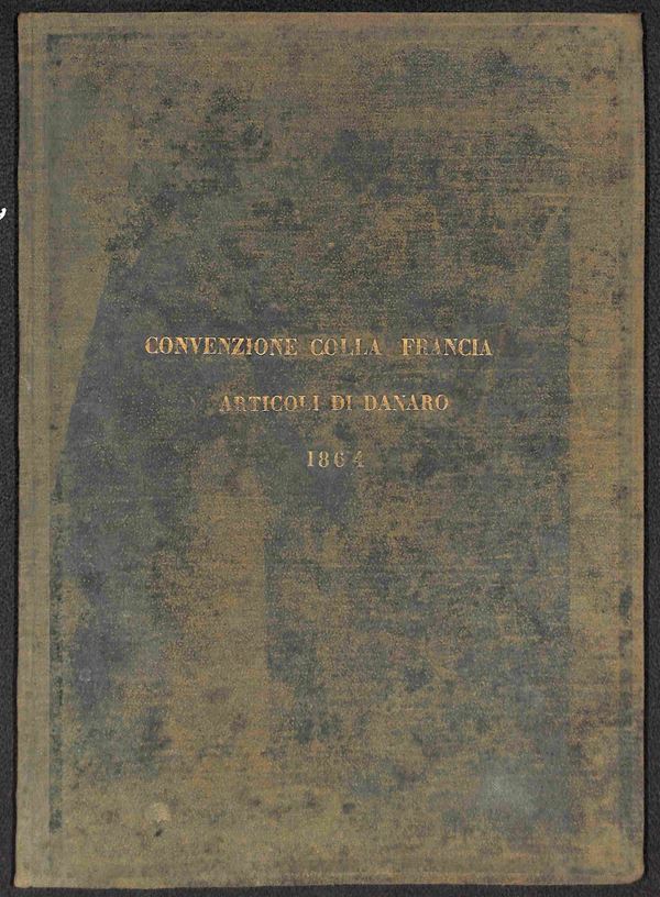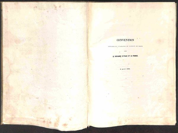 1864 (8 aprile) - Convenzione Postale Sardegna/Francia sugli Articoli di Denaro (conti coll’Estero) - fascicolo rilegato all’epoca di 40 pagine + Modulo - raro insieme