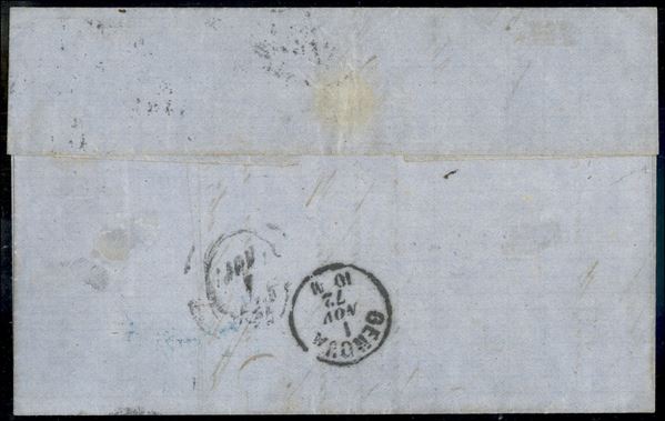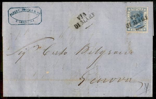 1872 Lettera da Cagliari 29 ott. per Genova con 20 cent (26) annullato Via Di Mare