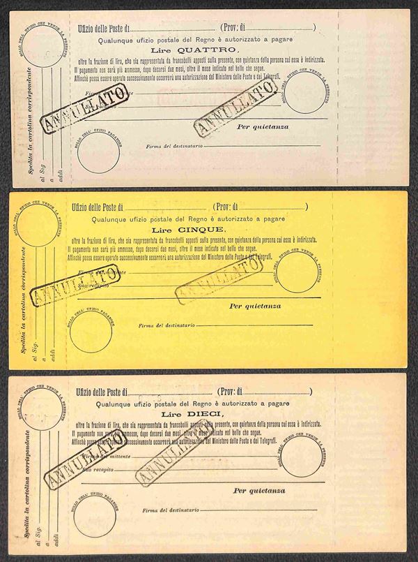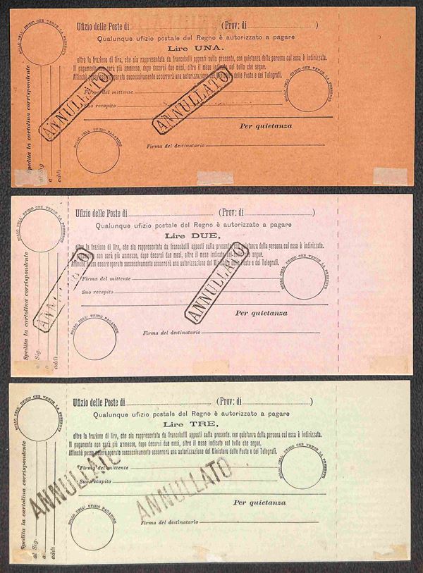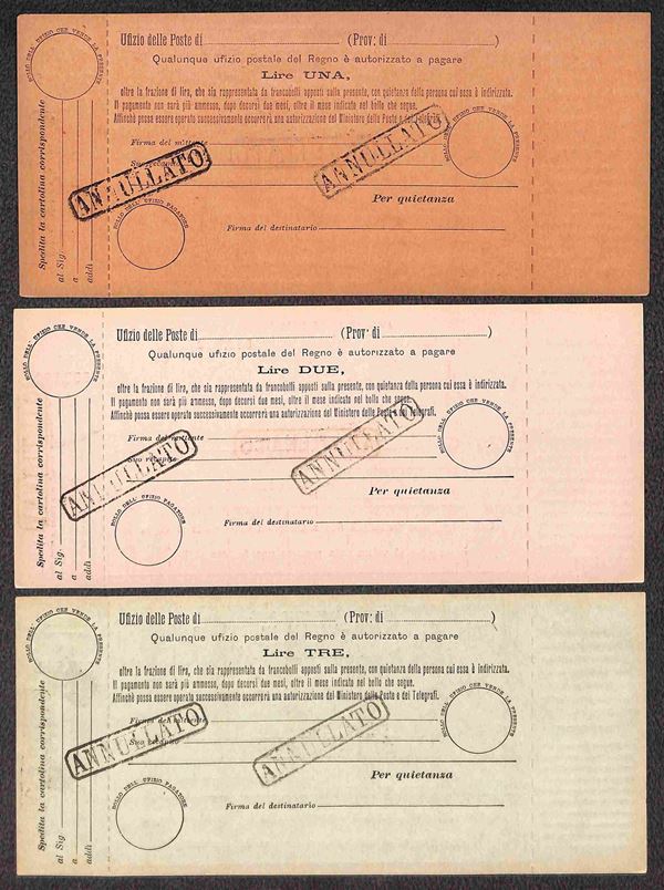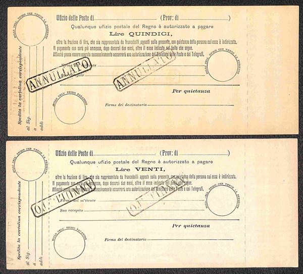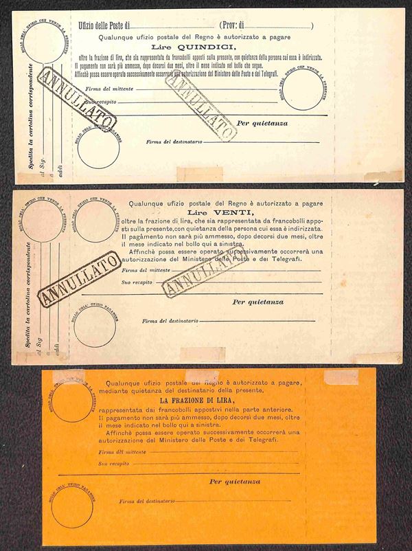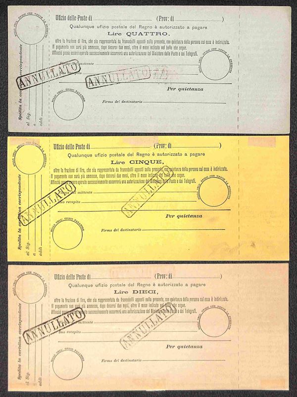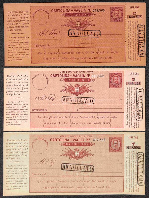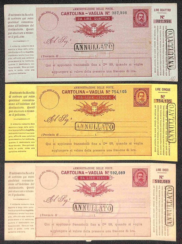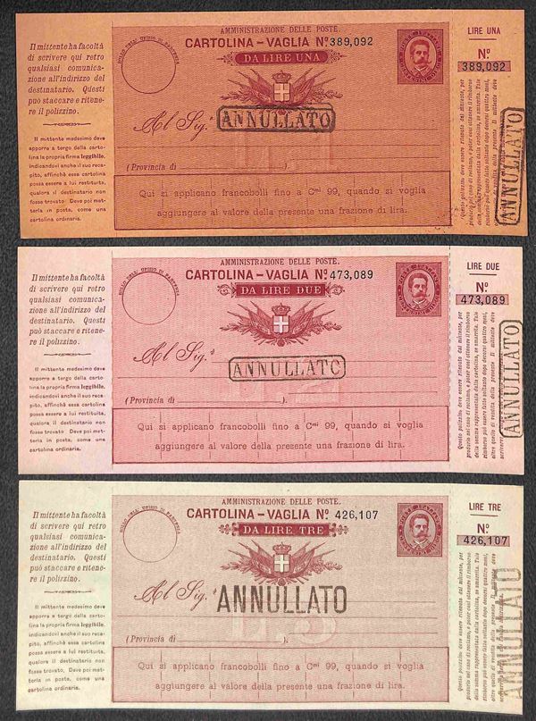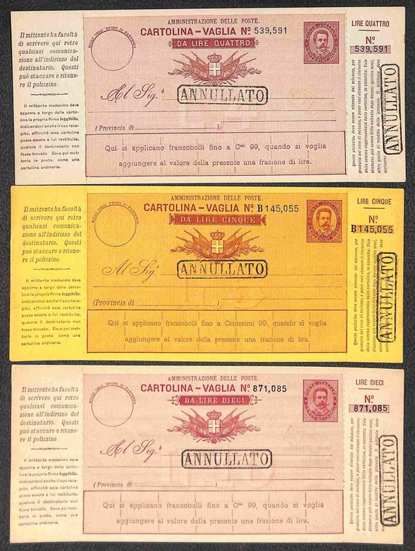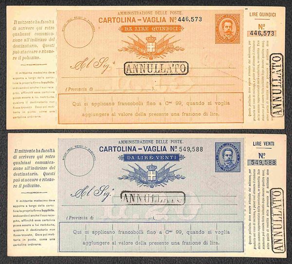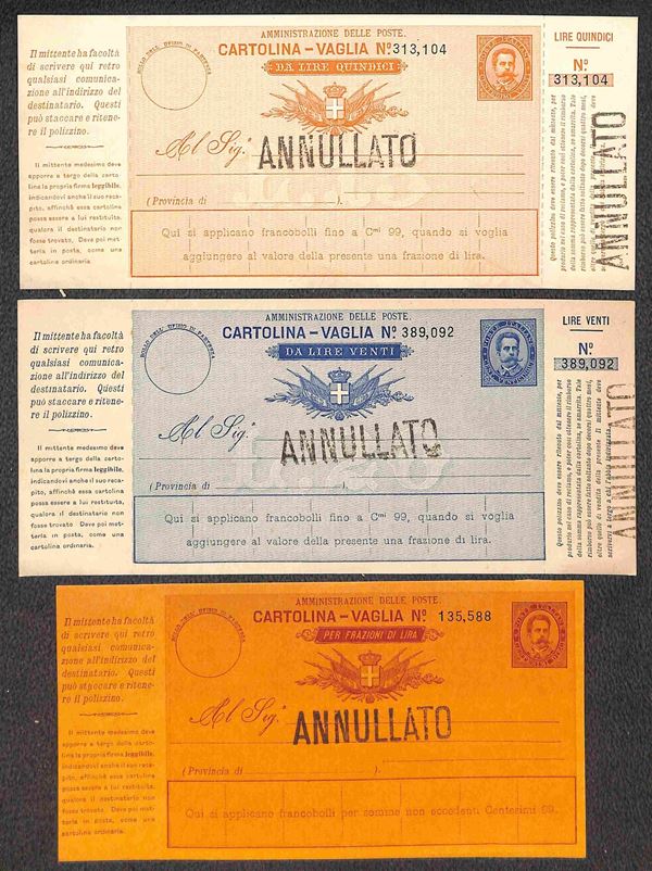 1890 - Annullato - 17 Cartoline Vaglia (SG1/6 + SG11/13) nuove - alcune ripetute