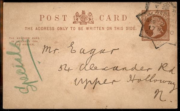 1890 - Annullo speciale Penny Postage Jubilee Guildhall su intero da 1/2 penny
