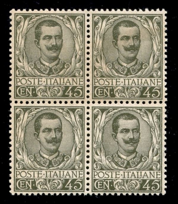 1901 - 45 cent Floreale (75) in quartina - gomma integra - ben centrata (300+)