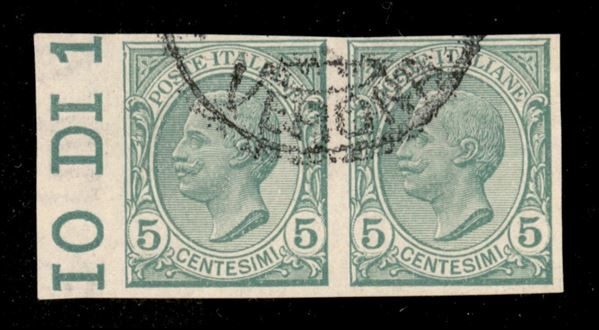 1906 - 5 cent Leoni (81e) - coppia orizzontale non dentellati - usati
