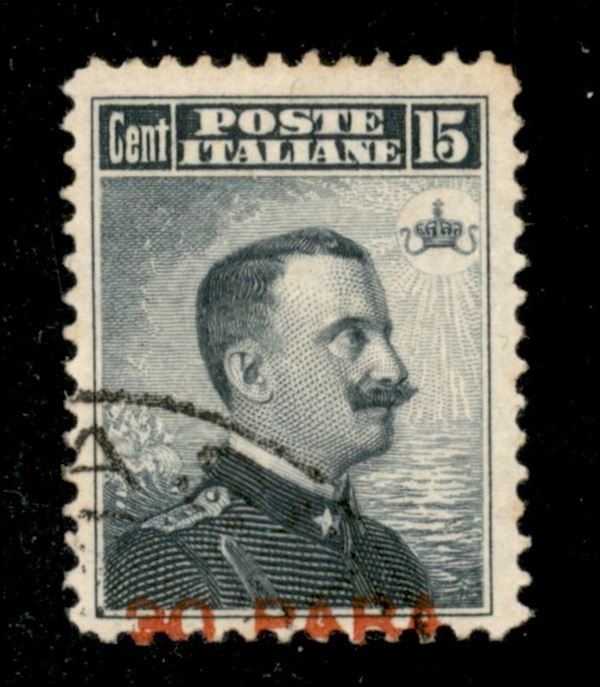 1908 - 30 para su 15 cent (15ca) usato - soprastampa a cavallo solo in basso (primo della fila)