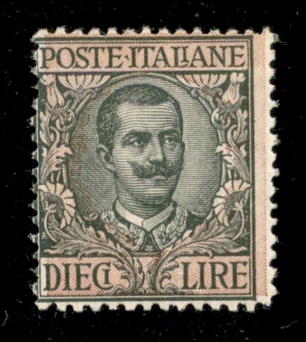 1910 - 10 lire Floreale (91a) - ornato floreale spostato di 1 mm - gomma integra