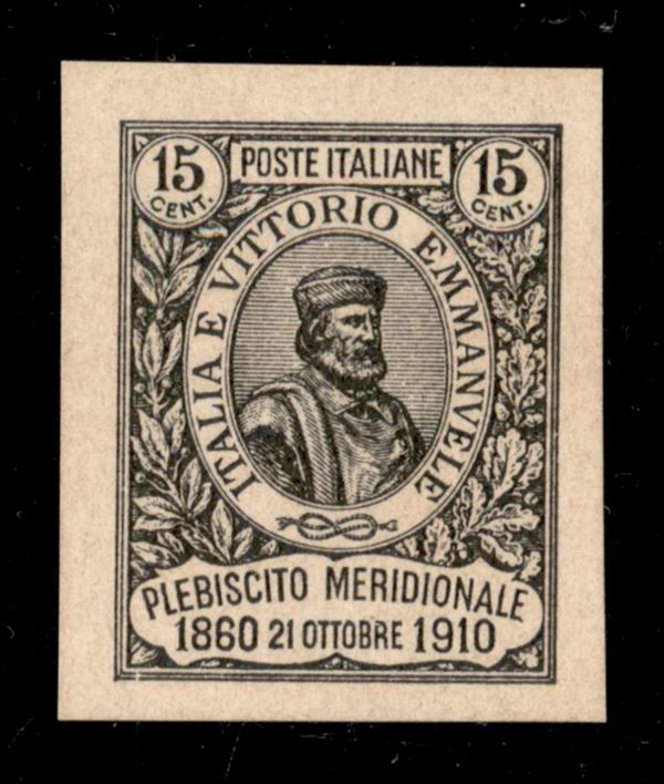 1910 - Prove di Macchina - 15 cent + 5 Plebiscito (90) - prova in nero su carta crema - senza gomma