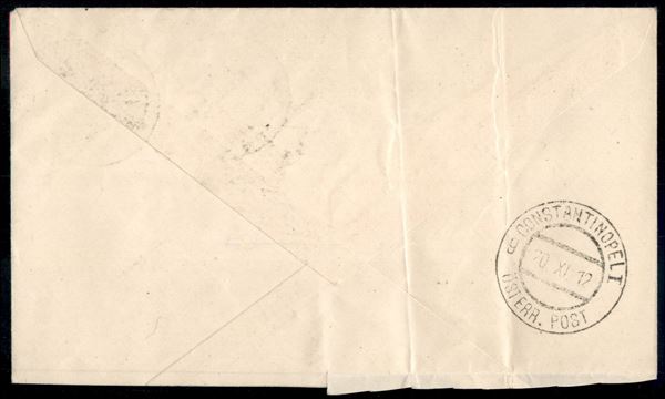 1912 Egeo prima emissione i due valori (1/2) su ampio frammento di lettera con annullo completo Poste Italiane (Rodi Egeo) 8.11.12