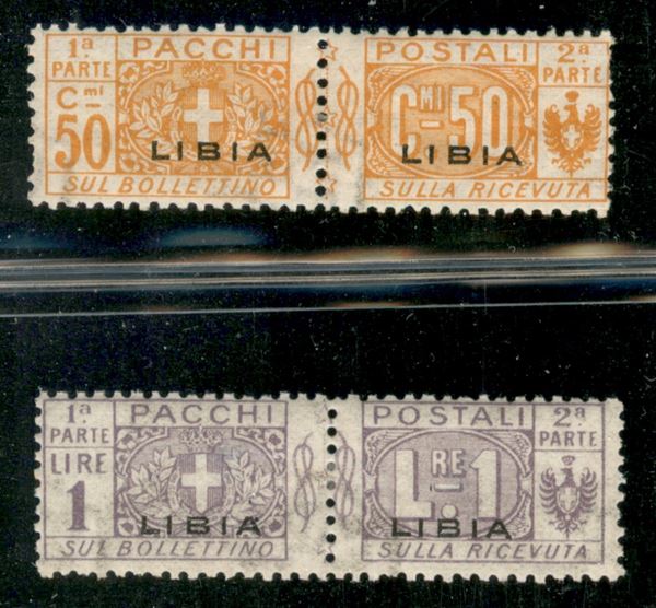 1915 - 50 cent + 1 lira Pacchi Postali (5d+6d) - soprastampe sottili - 2 valori con gomma originale