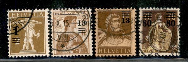 1915 - Soprastampati nuovo valore (124/127) - le due emissioni dell'anno - usati
