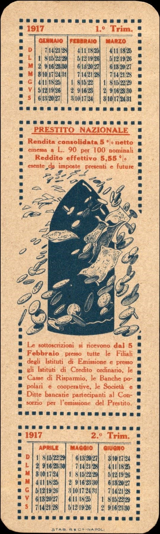 1917 - Prestito Nazionale - Insieme di 2 segnalibri/calendarietti diversi - ottimo stato di conservazione