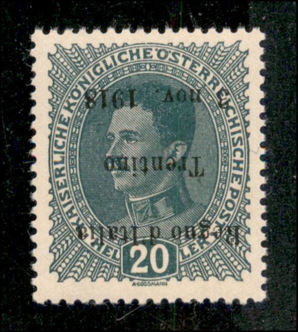 1918 - 20 heller (7b) con soprastampa capovolta - gomma integra