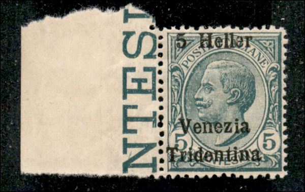 1918 - 5 heller su 5 cent (28h) con soprastampa fortemente spostata in basso - bordo foglio - gomma integra