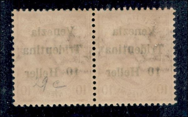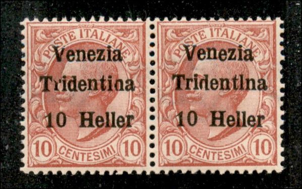 1918 - Coppia del 10 heller su 10 cent (29 + 29ca) con l al posto di i - gomma integra