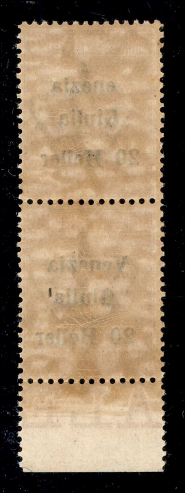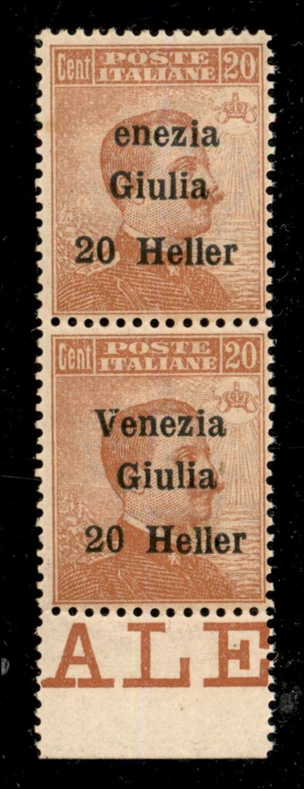 1918 - Coppia del 20 cent Michetti (29g + 29) con esemplare superiore senza V - bordo foglio - gomma integra