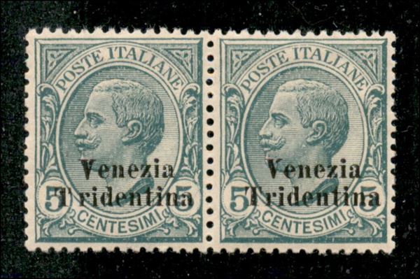 1918 - Coppia del 5 cent (21 + 21c) con T spostata verso sinistra - gomma integra