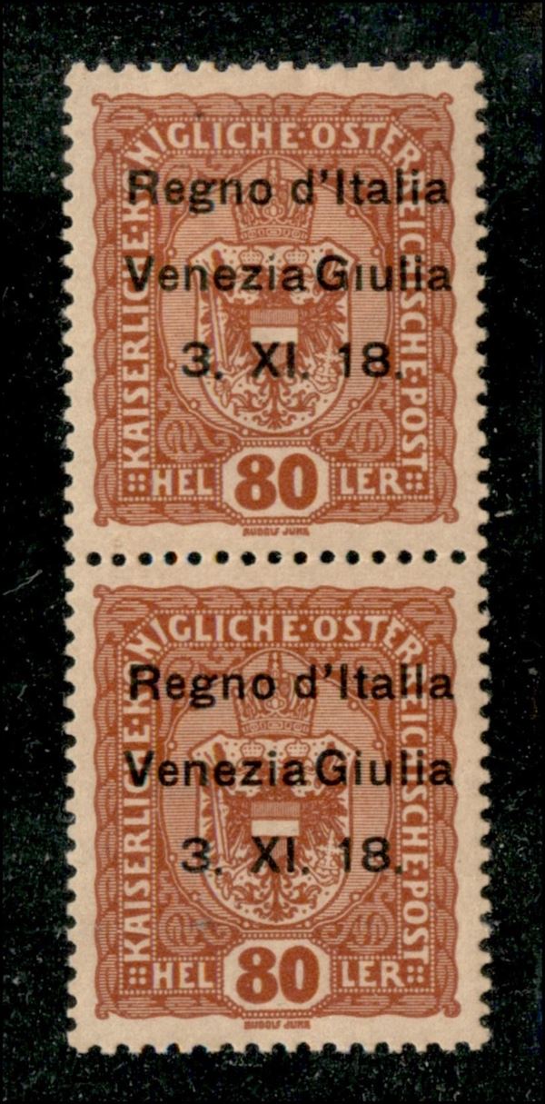 1918 - Coppia del 80 heller (13 l/m) senza punto sulla i e Italla - gomma originale