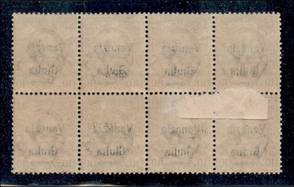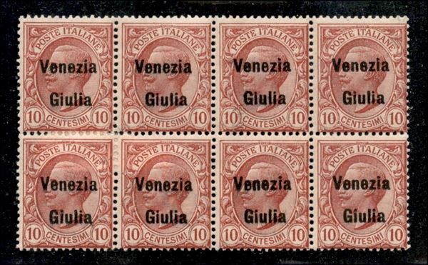 1918/1919 - Blocco di otto del 10 cent (22) - gomma integra sui 5 valori di sinistra