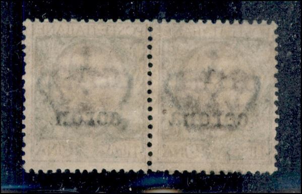1919 - 1 corona su 1 lira (11f) con solo "coron" in coppia con il normale - lieve decalco - gomma integra